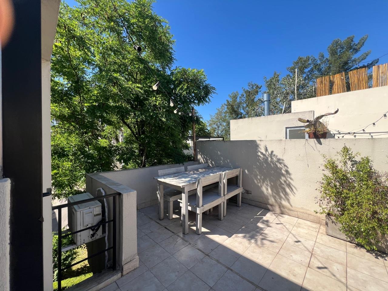 Departamento 3 ambientes - Muy luminoso con terraza y excelente vista. - Apto Credito Planta baja: Acceso a living comedor, cocina integrada. Toilette de recepción Galeria exterior Espacio de guardado en bajo-escalera 1er Piso:Habitación principal con vestidor y balcón Habitación secundaria con placard completo . Baño completo con bañera Muy buena luz natural en todos los ambientes 2do Piso:Terraza de gran superficie con parrilla propia y posibilidad de conexión de Jacuzzi. La propiedad cuenta con sistema de calefacción por radiadores y aires acondicionados split en todos los ambientes. El barrio Terrazas del Haras, esta ubicado sobre la calle Colinas del Norte, paralela inmediata a calle Caamaño. El condominio se encuentra en frente del barrio "El Establo" a 1 cuadra de Pueblo Caamaño y del supermercado ECO. A unas pocas cuadras de los centros comerciales Officia y La Escala y a pocas cuadras de los colegios St. Matthew s College y de Colegio North Hills. Toda la información del aviso, incluyendo medidas, precio, impuestos, servicios, etc. son estimativos, sujetos a modificación y no vinculantes, según lo dispuesto en el art. 973, Cód. Civ. y Com.
